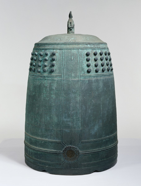 Temple bells are rung during Buddhist rituals and to announce the time. This bell dates back to the start of the Kamakura period (1185–1333). It was offered to Kasagidera by Chōgen (1121–1206), who was at the center of the efforts to reconstruct Tōdaiji after Nara’s devastating 1180 fire. The decorative register of distinctive engraved lines at the base suggest the possible influence of Chinese bells.