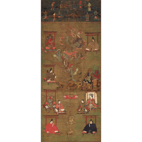 Seated Portrait of En no Gyōja with Two Seated Demons (Zenki and Goki)
