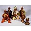 やがて、舎利はあらゆる願いをかなえる不思議な玉、如意宝珠(にょいほうじゅ)(摩尼宝珠(まにほうじゅ)、宝珠ともいう)と見なされるようになりました。舎利の霊験の強さが如意宝珠と同体であるという発想を生んだのでしょう。宝珠は如意輪観音が手に持っていたり、愛染明王像の宝瓶座(ほうびょうざ)の中につまっているなど、様々なホトケと密接な関連を有しています。宝珠との結びつきにより、舎利はこのようなホトケたちとも関連を深め、日本の舎利信仰は独自の展開を見せるようになりました。複雑な信仰を反映して、日本の舎利容器は宝塔形、五輪塔形、宝珠形などいくつもの形式が現れました。