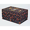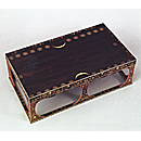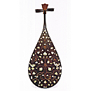 本年の特色を摘記すると、まず特筆されるのは聖武天皇ゆかりの北倉の宝物が多数出陳される事です。分けても、紫檀(したん)の黒い地に螺鈿(らでん)の白さが映える螺鈿紫檀琵琶(らでんしたんのびわ)とこれに附属する紅牙撥鏤撥(こうげばちるのばち)は、華麗な天平時代の宮廷生活を想像させるのに充分な美しさと品格を兼ね備えています。また木画紫檀双六局(もくがしたんのすごろくきょく)をはじめ双六の駒や賽子(さいころ)等がまとめて出陳され、音楽とあわせて宮廷での遊びや楽しみの世界が展示室に甦ります。