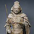 當麻寺金堂の須弥壇[しゅみだん]上に安置される四天王立像の一つ。漆に混ぜ物をしてペースト状にしたもの(乾漆)を盛り上げて造っており、像内は心木を残して空洞とする。日本における乾漆像の黎明期の様相を示す貴重な作例。