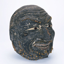 伎楽は中国の呉(ご)から伝わったとされる仮面劇で、奈良時代の仏教法会(ほうえ)においてしばしば上演された。伎楽で使用された面は14種23面であるが、宝庫には171面が伝わっている。うち135面が木彫(もくちょう)、36面が乾漆製(かんしつせい)である。本品は乾漆製の面で、表面は黒漆を塗り、顔面には彩色(さいしき)を施している。眉とひげには植毛している。額や目尻、頬にはしわを表しており、老人を表しているかと思われる。