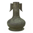 銅製、鍍金(ときん)の壺。下膨れの胴、両耳を付けた長い頸(くび)が特徴的。外面に線刻で唐草文や花、鳥、瑞雲、獅子などの様々な文様(もんよう)を表している。