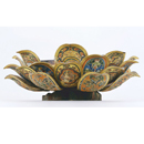 仏像の蓮華座(れんげざ)のような形をした木工品。岩形の基座の上に華麗な蓮弁(れんべん)を葺(ふ)き、盆状に作った蓮肉(れんにく)をのせている。蓮弁は黒漆(くろうるし)を塗り、外側は金箔を押し、唐花文(からはなもん)や迦陵頻伽(かりょうびんが)、花喰鳥(はなくいどり)、鳳凰、鴛鴦(おしどり)、獅子などを彩絵している。岩座の裏面に「香印坐」という墨書があり、仏前に供える香具の台座であったことがわかる。