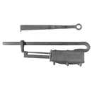 鑰(やく)とは錠、鍵のこと。本品は鉄製で、大型の鏁(さ)と匙(ひ)からなる海老錠(えびじょう)であるが、鏁と匙とでは年代が異なっている。