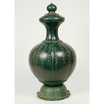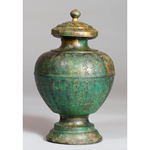 忍性の遺骨を納めた水瓶形(すいびょうがた)の骨蔵器。表面には24行全347字の銘文を刻む。忍性の遺骨は本人の遺言に従って三分され、奈良の額安寺、同竹林寺、鎌倉の極楽寺に埋葬された。本品は額安寺に納められたもので、境内北の奥の院に建つ高さ2m90㎝の五輪塔の地下から見つかった。竹林寺の骨蔵器とほぼ同形で、銘文も一致する(一文字分少ない)。忍性本人に関わる直接遺品。本品の近くに追納された弟子や結縁者の分骨容器(円筒形、五輪塔形などの銅製容器)も今回はすべて展示する。
