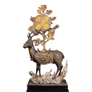 雲上に唐鞍(からくら)を着けて立つ金銅(こんどう)製の鹿の像。鞍上には神籬(ひもろぎ)(榊)を立てて春日四所及び若宮の本地仏(ほんじぶつ)を線刻した御正体(みしょうたい)を付けている。類品が知られないが、春日鹿曼荼羅(かすがしかまんだら)と同様、礼拝(らいはい)の対象として調(ととの)えられたものであろう。