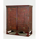 聖武天皇と光明皇后の婚姻に際して相交わした品のように夫妻にとって殊に重要なものや、刀子(とうす)や帯、笏(しゃく)といった装身具、双六(すごろく)の駒や賽子(さいころ)、念珠、尺(ものさし)などの小物類、尺八など(北倉4~23)、身近に置かれた比較的小さな品々が納められていた大型の厨子(ずし)。天武天皇から、持統、文武、元正、聖武、孝謙と歴代の天武系の天皇に相伝されてきた非常に重要なもので、『国家珍宝帳(こっかちんぽうちょう)』に「古様(こよう)の作」と記されるように、7世紀後半に遡(さかのぼ)る様式を示すと考えられる。