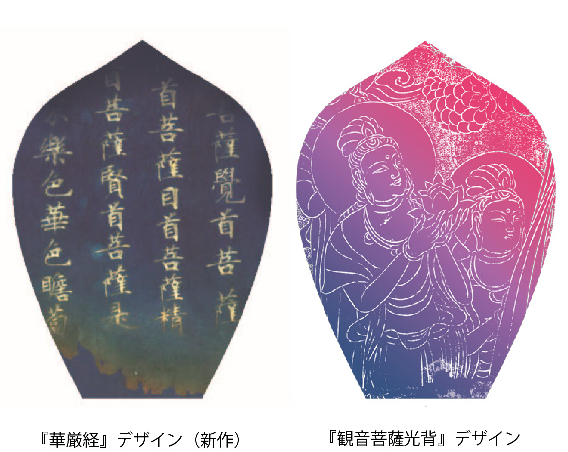 「特製散華」のデザインは、江戸時代に二月堂が全焼した際にその焼け跡から発見された『華厳経』(二月堂焼経)をあしらったものです。