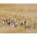 おん祭の様子を描いた三巻からなる長大な絵巻の二巻目。おん祭の華(はな)であるお渡り式(風流行列(ふりゅうぎょうれつ))の始終を丹念に描く。中盤以降は添景(てんけい)も描かれず、やや単調だが、謹直に故実(こじつ)を踏まえて描写されている。