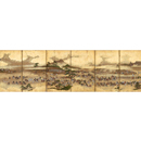 右隻(うせき)におん祭のお渡り式(風流行列)の様子を表し、左隻は貴顕による大鷹狩(おおたかがり)を主題とする。おん祭は近世には11月27日に行われており、ともに霜月(しもつき)(11月)の風俗を描いたものと思われる。