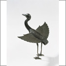 春日大社の摂社である若宮神社に奉納された品々の一つ。高さ13センチメートルと小型の鶴ながら、羽根を広げて上方を望む姿がとても優美です。百円切手の絵柄に登場し、広く親しまれています。
