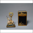 (鹿座仏舎利)木製 彩絵 (外容器)木製 黒漆塗 蒔絵