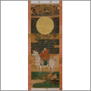 春日大社第一殿の祭神、武甕槌命(たけみかづちのみこと)が、白鹿に乗って常陸国(ひたちのくに)を発ち、奈良・春日の地に至ったという伝説を描いています。制作時期と絵師が明らかな貴重な作です。