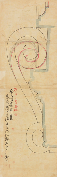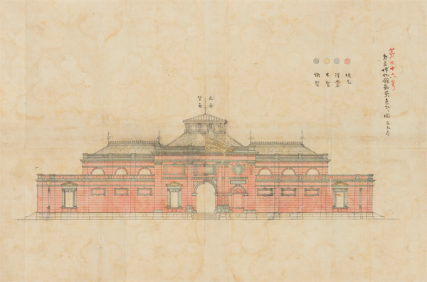 帝国奈良博物館建設に関係する設計図で、和紙や絹に墨筆や烏口(からすぐち。製図用のペン)を使って大半は肥痩の無い線で描くが、装飾図はデッサン風である。日本人建築家が手がけた最初期の西洋建築の設計や建設をめぐる実態が記録されており、博物館というビルディングタイプを生み出す際の思慮の痕跡がうかがわれる点でも、近代建築史上重要。
