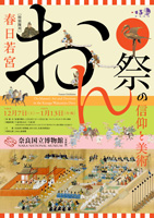 本展はおん祭の歴史と祭礼、ならびに春日大社への信仰に関わる美術を紹介する恒例の企画です。精緻な技巧が凝らされた神宝とともに、近年行われた文化財復元の成果もあわせて展示します。春日信仰にまつわる数々の作品を通じ、大和一国を挙げて行われた華やかなおん祭の世界をご覧ください。