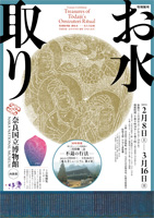 奈良国立博物館の特別陳列「お水取り」は、お水取り(修二会)が行われる期間(毎年3月1日~14日)にあわせて開催される恒例の行事です。修二会は基本的に非公開の行法であるため、一般にはうかがい知れない神秘性を多く含んでおり、その複雑な行法は長い歴史の中で徐々に形成され、多様な宗教・文化の歴史が織り込まれています。本展を通じて、この掛け替えのない儀礼への理解を深め、その尽きせぬ魅力を感じ取っていただければ幸いです。