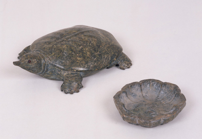 자라 모양의 뚜껑과 꽃 모양의 접시가 한 세트로, 암녹색의 사문암(蛇紋岩)으로 자라 형태를 만든 후 눈에 호박(琥珀)을 끼웠다. 사실적이며 동물 조각으로서도 매우 뛰어나다. 불로장생을 꿈꾸며 선약(仙藥)을 보관하기 위한 용기라는 설이 있다.