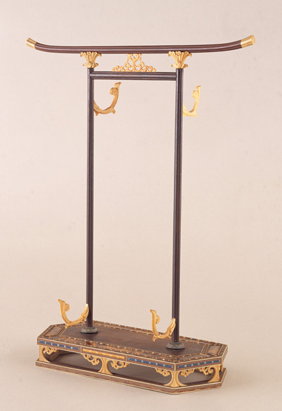 육각기단에 자단나무로 제작한 토리이(鳥居) 형태의 기둥을 세웠다. 기둥의 앞면 하단과 뒷면 상단에는 상아로 제작한 갈고리를 달아 물건을 걸 수 있도록 하였다. 기단의 장식은 푸른바다거북의 등껍질로 고급스럽게 장식하였다. 사용 용도는 알 수 없으나 작고 가벼운 두루마리 형태의 직물이나 족자와 같은 물품을 걸었을 것으로 보인다.