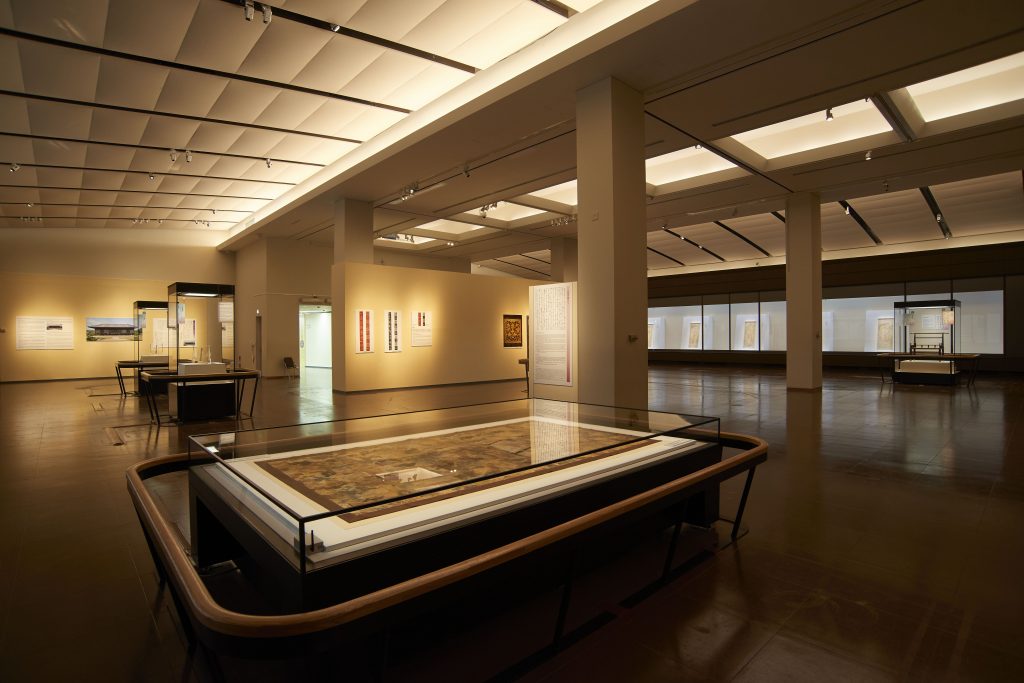 동신관 외관 입구 전시실 동신관은 특별전과 쇼소인 전 그리고 특별진열 등의 소규모 전시장으로 이용되고 있습니다. 건물에 대해서 1997년 완성되었다. 요시무라 준조(吉村順三、1908~1997)가 기본 설계를 담당하였다. 서신관과 중앙 입구 홀에서 연결되어있다. 신관 입구에 쓰여 있는「나라국립박물관」 글자는 쇼무 천황(聖武天皇, 701~756)이 쓴 「잡집(雜集)」에서 발췌한 것이다. 확대→이미지는